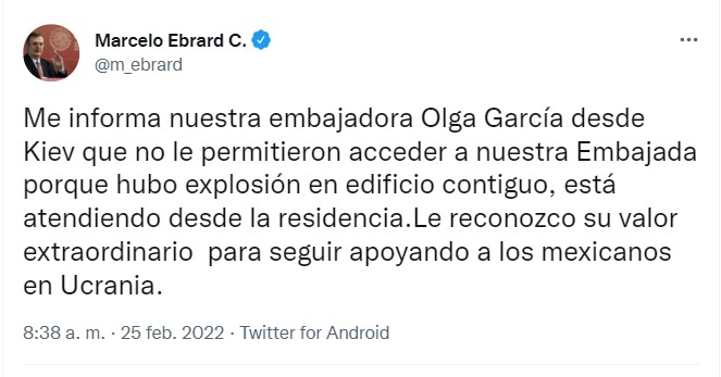 Así lo informó Marcelo Ebrard, Secretario de Relaciones Exteriores de México, a través de sus redes sociales.
