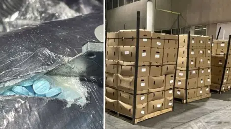 La búsqueda inició cuando los oficiales notaron "irregularidades" en el camión con remolque, lo que los llevó a llamar a un perro detector de narcóticos que los alertó sobre las píldoras que había dentro.