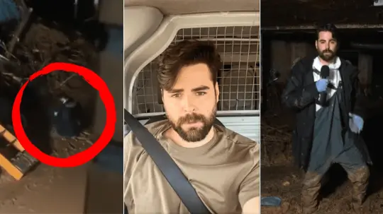Las reacciones inundaron las redes sociales este lunes luego de se viralizaran las imágenes en las que se ve al enviado especial del programa 'Horizonte', del canal Cuatro de España, en la zona afectada de Catarroja, Valencia.