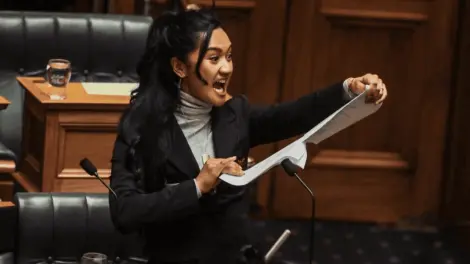 La sesión fue suspendida luego de que Hana-Rawhiti Maipi-Clarke, diputada del partido de oposición, comenzó a interpretar un haka, una tradicional danza ceremonial maorí, a modo de protesta.