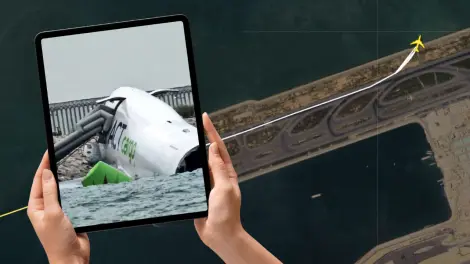 Un Boeing 747 de carga procedente de Dubái se salió de la pista del aeropuerto de Hong Kong durante el aterrizaje y terminó parcialmente en el mar, tras chocar con un vehículo de seguridad.
