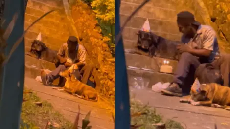 Un hombre en situación de calle tocó el corazón de miles de internautas luego de ser protagonista de un video que se hizo viral, en donde se le ve festejando el cumpleaños de uno de sus dos perritos.