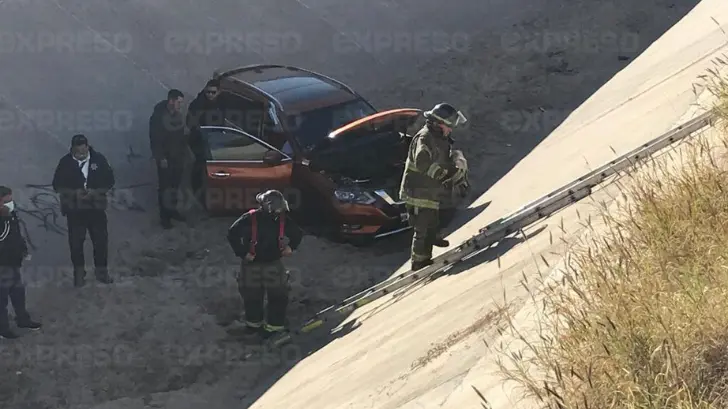 El accidente se presentó en el cruce de los bulevares Luis Donaldo Colosio y Quiroga, cuando el vehículo tipo sedán de una empresa refresquera impactó contra la camioneta, misma que terminó perdiendo el control y cayendo dentro del canal.