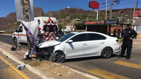 El exceso de velocidad hizo que en las inmediaciones del sector Adolfo de la Huerta, en Guaymas, el conductor de un automóvil resultara con lesiones leves tras estrellar su unidad contra un poste de alumbrado público.