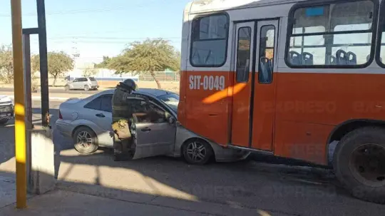 Un menor resultó con lesiones leves tras registrarse un choque entre un vehículo sedán y un camión del transporte urbano, en hechos ocurridos al norte de Hermosillo.