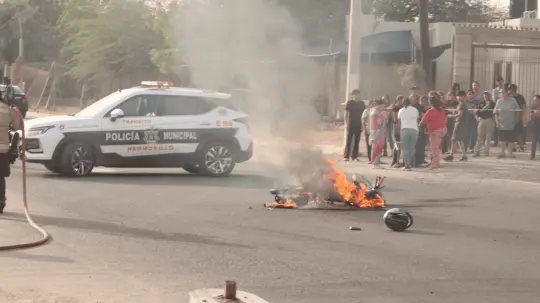 Bomberos de Hermosillo acudieron al lugar para sofocar las llamas de la motocicleta, mientras elementos de seguridad activaron el Código Rojo para atender la emergencia y acordonar la zona.