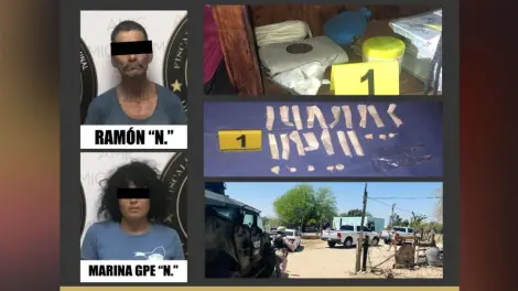 La denuncia anónima fue atendida por la Fiscalía de Sonora, acudiendo a una vivienda ubicada en la invasión Nueva Ilusión, lugar en que se detuvo a Ramón "N." de 53 años y a Marina Guadalupe "N." de 23.
