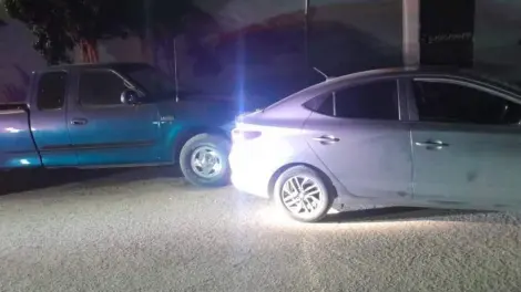 Elementos de la Policía Preventiva y Tránsito Municipal, atendieron el reporte de un choque vehicular entre un pick up color verde y un sedán color gris, en este último se encontraba un sujeto ensangrentado y con una lesión en el cuello.