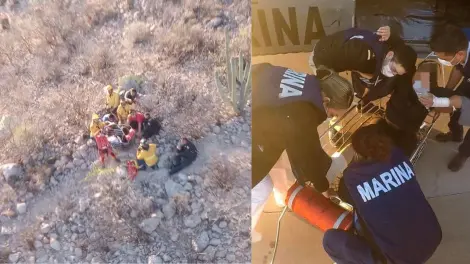 Una mujer de 34 años de edad resultó con fracturas en extremidades luego de caer varios metros del cerro 'La Cantera', por lo que paramédicos de instituciones de emergencias en San Carlos y personal de la Secretaría de Marina acudieron a brindar auxilio con el apoyo de un helicóptero.