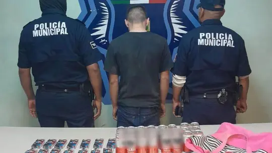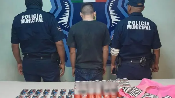 Con 14 cajas de cigarros y 24 latas de cerveza fue sorprendido un joven de tan sólo 17 años de edad en el interior de una tienda de conveniencia, el cual presuntamente ingresó al establecimiento dañando el cristal para cometer un robo.
