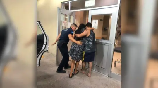 El esposo de la mujer embarazada les pidió su apoyo a los oficiales para llevar a su esposa al hospital, debido a que presentaba dolores de parto y su automóvil se había descompuesto.