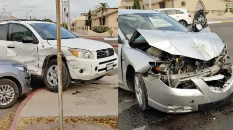 Según testigos oculares la colisión se dio cuando el conductor del Toyota no realizó el alto correspondiente al transitar por la calle Talamante, por lo que cortó circulación al conductor del Mazda y terminó su marcha impactando a otro vehículo que se encontraba haciendo el alto correspondiente.