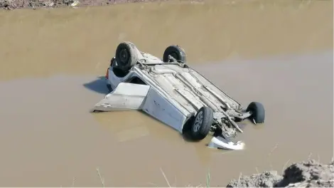 Agentes de la Policía de Tránsito tomaron nota de los hechos y solicitaron el apoyo de una grúa para sacar el coche del canal de riego.