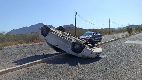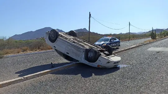 GUAYMAS, SON.- Poco después de las 16:00 horas se registró un choque por corte de preferencia y volcamiento a la altura del Boulevard Microondas y avenida Ampliación San Germán, en el sector Guaymas Norte.