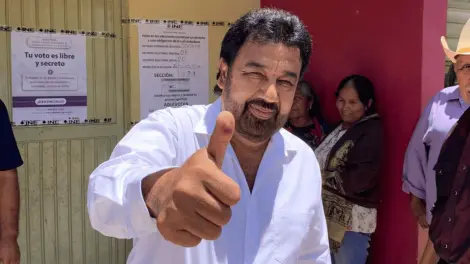 Arturo Robles, candidato a la alcaldía de Etchojoa, sufraga su voto
