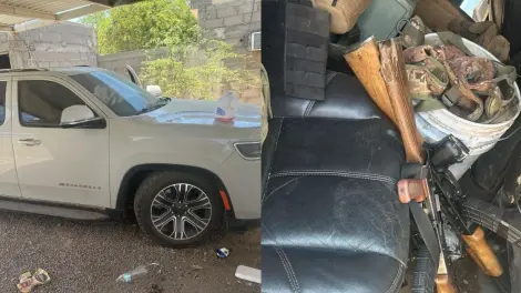 Aseguran armas, vehículos, explosivos y más en una casa en Pitiquito