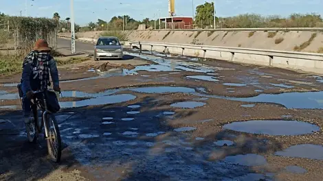 Automovilistas de Navojoa expresan molestia y desesperación al enfrentarse con grandes baches cubiertos de agua negra en el bulevar Centenario.