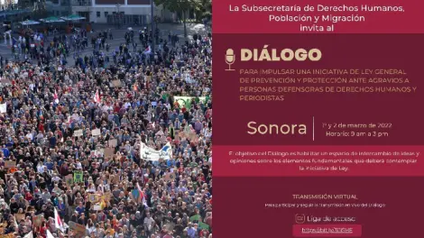 HERMOSILLO, Son.- La Subsecretaría de Derechos Humanos, Población y Migración, dio inicio al dialogo para impulsar una iniciativa de ley general de prevención y protección ante agravios a personas defensoras de derechos humanos y periodistas, en el que participaron de manera virtual; sociedad civil e integrantes de diferentes medios de comunicación.