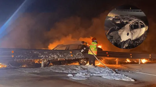 No se localizaron lesionados ni restos humanos, solo el vehículo calcinado, por lo que se presume que el conductor huyó del lugar.