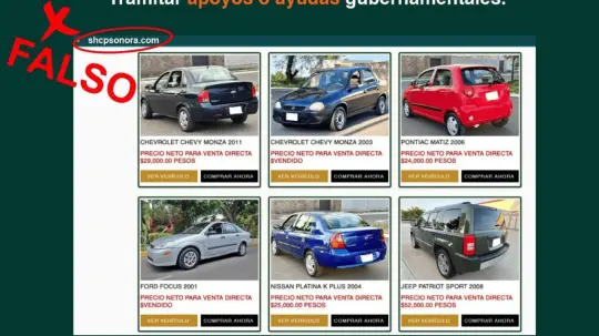 Este sitio ofrecía vehículos en remate, suplantando la identidad de la entidad gubernamental.