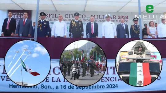 "Desfilaron ante el pueblo sonorense 15 banderas, 9 guiones, 130 integrantes de la Guardia Nacional, 261 del Ejército Mexicano, 52 de la Fuerza Aérea Mexicana, 112 de la Secretaría de Marina, 50 del Servicio Militar Nacional, 168 de corporaciones de Seguridad Pública Estatal y Municipal, 104 estudiantes, 30 integrantes del Heroico Cuerpo de Bomberos, 16 de Protección Civil, 10 de la Cruz Roja Mexicana, 25 de Rescate Juvenil, 45 de Pentatlón Sonora, 116 vehículos, 6 motocicletas, 3 aviones T6, una embarcación y 20 jinetes. Todos participaron con disciplina, gallardía y patriotismo. Sin novedad", puntualizó.