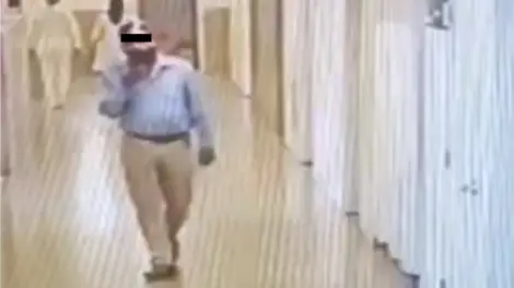 Pasó por enfrente de las cámaras, que lo registraron cada uno de sus movimientos mientras además fingió una llamada por celular antes de tomar un maletín propiedad de la jefa de enfermeras.