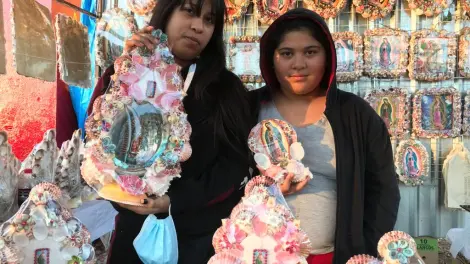 Por más de 15 años, la familia Torres Méndez originaria de Puerto Peñasco, visita el Cerro de la Virgen en Hermosillo para ofertar su altares de santos que realizan en conchas.