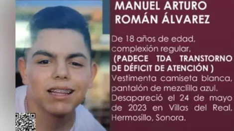 La Fiscalía de Sonora activó la alerta para localizar a Manuel Arturo Román Álvarez, joven de 19 años de edad que padece trastorno de déficit de atención y que desapareció la noche del pasado miércoles 24 de mayo en Hermosillo.