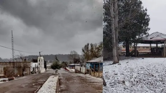 Según la información proporcionada por la dependencia estatal, la caída de aguanieve es asociada a la combinación del frente frío 32, la sexta tormenta invernal de la temporada e interacción con una corriente en chorro polar.