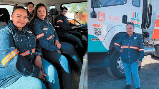 Desde las 8:30 horas, la cuadrilla femenina de recolección de residuos en Hermosillo se encuentra lista comenzar su jornada a bordo de la unidad 4069, mejor conocida como 'Las Supercolectoras'.