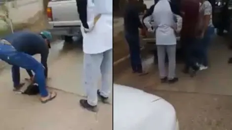 Varios automovilistas persiguieron a un hombre que llevaba arrastrando a un perro de una camioneta pick up en las calles de Empalme, y el momento en que el animal va lastimándose con el pavimento fue captado en un video.