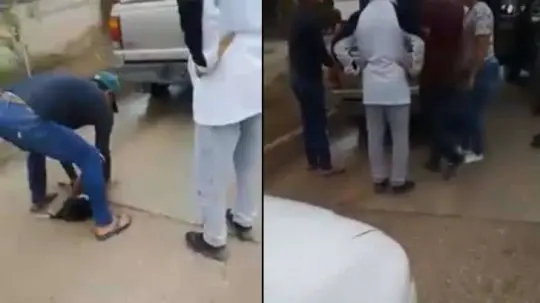 “Con los animales no se juega, toda la gente le está gritando oiga, eso no se hace, lo traía amarrado, con eso no se juega, lo vamos a amarrar a usted”, le decía una mujer entre la confusión y se apreciaba una mancha de sangre del perrito en el suelo.