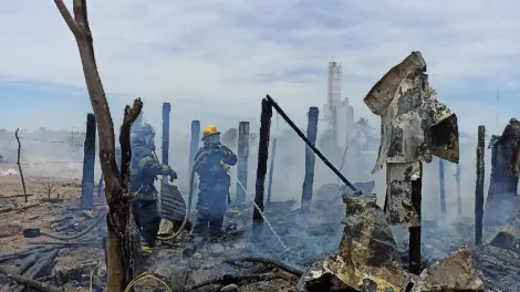 Los "apagafuegos" se trasladaron hasta la citada ubicación, encontrando efectivamente una casa-habitación construida con madera, lámina hule y cartón consumida por el fuego.