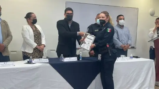 La agente Gutiérrez Aldama fue reconocida con una placa por su intervención con labor de convencimiento con un hombre, para evitar que se suicidara lanzándose desde lo alto de un puente del periférico Luis Donaldo Colosio, a la altura de la unidad deportiva, así como la localización de una menor de edad, que estaba reportada como extraviada en la colonia Colinas del Sol, entre otros logros durante febrero pasado.