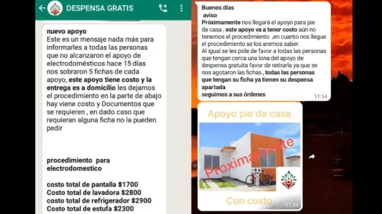Después de que hicieron el procedimiento para obtener la despensa, se les envió un mensaje para decir que se habían agotado las fichas, pero que próximamente les llegarán apoyos para construir pies de casa y que esa ayuda tendrá un costo, y también se les ofrecieron electrodomésticos a precios módicos.