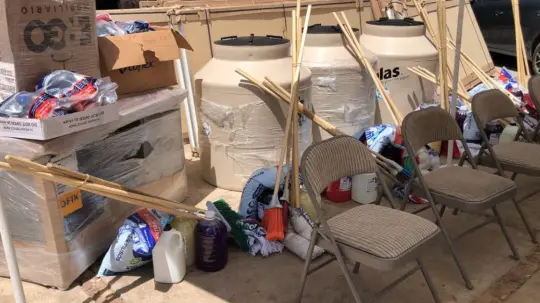 Se trata de un total de 23 tinacos para almacenar agua, material de limpieza, vales para fumigación y material de oficina para las aulas de las 42 escuelas que fueron tomadas en cuenta.
