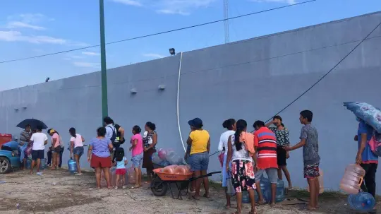"Estamos muy preocupados porque se dice que van a irrumpir en las casas para robar cosas. ¿Dónde está la autoridad, dónde está el gobierno para ayudarnos?", cuestionó Alina Enríquez, quien también esperaba pacientemente en la larga fila para asegurar sus cuatro botellas de agua purificada.