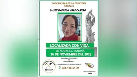 Localizan sana y salva a Suset Daniela, joven desaparecida en Nogales