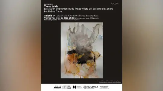 A través de la extracción de pigmentos de frutos así como de la flora del desierto de Sonora, Delma Garza garantiza una aventura única durante su exposición 'Tierra Árida', organizada por el Instituto Sonorense de Cultura (ISC) y el Sistema de Apoyos a la Creación y Proyectos Culturales (Sacpc).