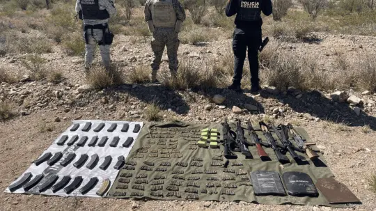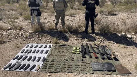 En una acción conjunta entre elementos de la Guardia Nacional, la Secretaría de la Defensa Nacional (Sedena) y autoridades de los tres niveles de gobierno, se llevó a cabo el aseguramiento de un importante arsenal, cargadores y cartuchos en el municipio de Trincheras.