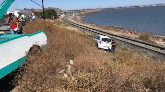 GUAYMAS, SON.- Durante la tarde del sábado se registró un aparatoso accidente sobre la carretera Internacional México 15, tramo Guaymas Empalme, en el cual participaron tres vehículos y dejó como saldo dos personas lesionadas.