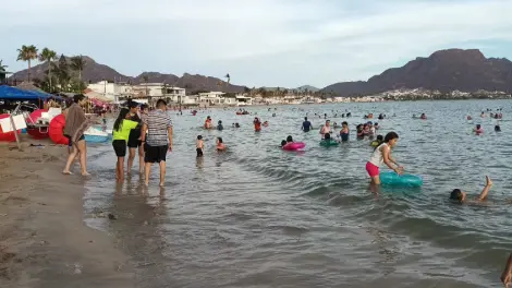 Con una temperatura de 37 grados centígrados y una humedad casi del 80 por ciento, locales y vacacionistas acudieron a las playas para mitigar el calor sofocante que se siente durante la época de verano en la región, por lo que se espera un aumento en la afluencia de vacacionistas en los próximos días.