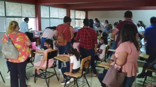 Desde las ocho de la mañana, cientos de pequeños acompañados de sus padres acudieron a las cinco sedes que fueron habilitadas por la Secretaría del Bienestar para recibir la dosis del biológico Pfizer en el municipio de Navojoa.