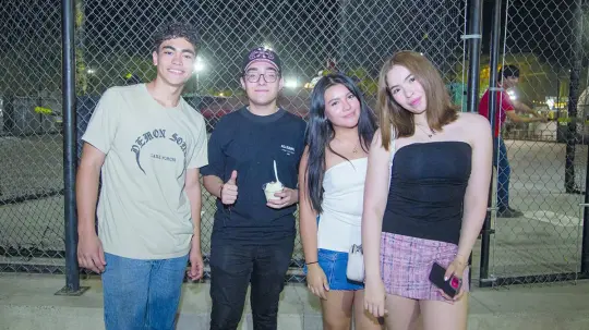 Con porras, aplausos y muchas risas, los aficionados animan a sus amigos mientras batean la pelota en un ambiente lleno de euforia.