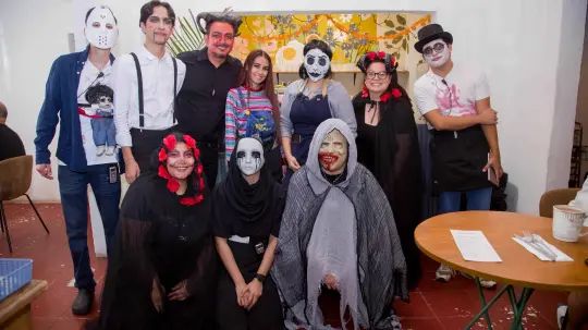Con motivo de la próxima celebración de Halloween, los meseros sirvieron el desayuno con disfraces y los asistentes, chicos y grandes, disfrutaron de una mañana llena de color, disfraces y muchas sonrisas.